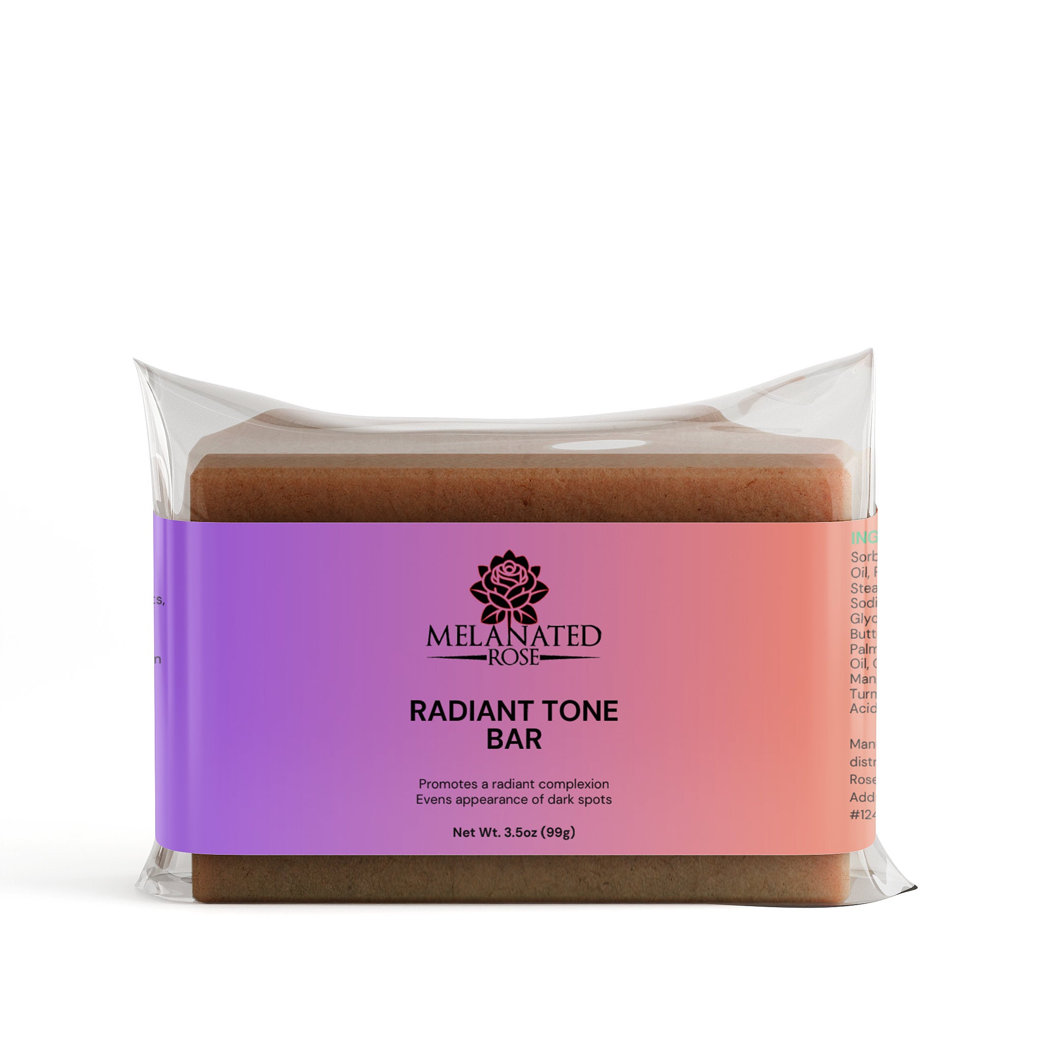 Glow louder with Melanated Rose Radiant Tone Bar, the ultimate skin-brightening soap designed to evenly tone, nourish deeply, and uplift your melanin with every lather. Powered by the skin-loving duo of Kojic Acid and Turmeric, this bar doesn’t just cleanse—it transforms.